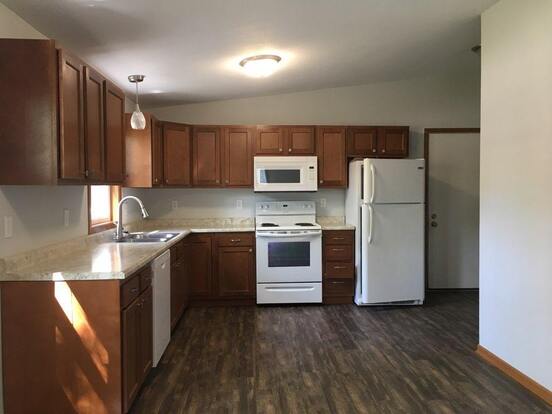 Enjoy ample outdoor space, a single-stall attached garage, dishwasher, in-unit laundry, and A/C in these 2-bedroom/1-bathroom duplex units. Lawncare and snow removal are included in the rent. This duplex is also smoke-free and pet-friendly!