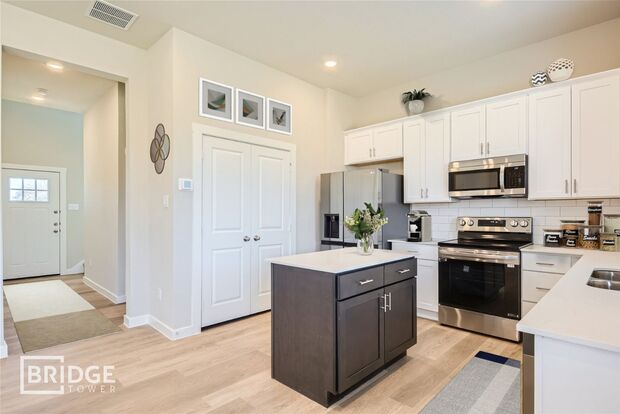 The centerpiece of this home is its modern kitchen, adorned with sleek stainless steel appliances that elevate your culinary endeavors. The open floor plan seamlessly connects the living, dining, and kitchen areas, offering the perfect setting for entertaining guests or creating lasting memories with family.