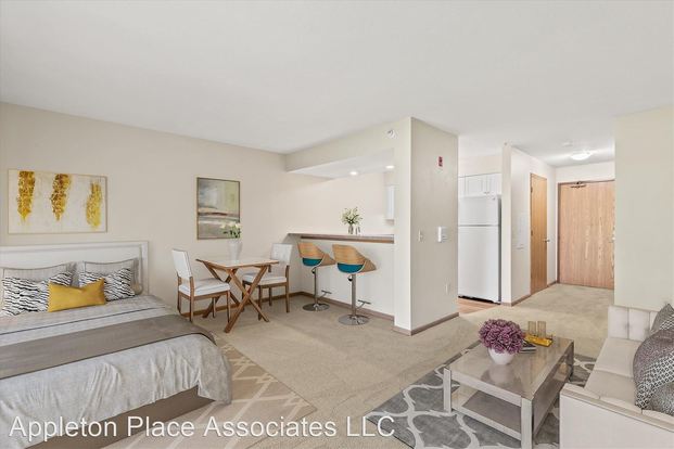 Spacious Studio Layout! - Appleton Place is now renting a studio apartment. This unique design adds both efficiency and function to a studio layout. Offering an open concept floorplan, this space has the perfect combination of economic living space with ample storage. There is an abundance of closet space, large bathroom & kitchen with overhead cabinets and breakfast bar seating to maximize all the space in this unit. Comfortable living with amazing savings all in one!