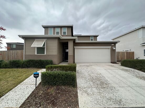 This beautiful two-story home, built in 2021 approximately 2102 square feet with a spacious living room, carpet & laminate flooring, dining area, large kitchen island, granite counters, gas range, dishwasher, microwave, refrigerator, XL washer, dryer included, garbage disposal, laundry room, central heat & air, two-car garage w/ electric opener, weekly front yard maintenance included & backyard monthly (except gated garden area), the internet is required to utilize the smart features of the home which includes thermostat control, front door lock control, garage door opener control, ring doorbell, and simplisafe security system (optional). Close to schools, parks(across the street), and shopping. Take W Yosemite Ave to Via Moraga to Jardin Way to Valdes Dr to Robledo Way. Addendum to be signed: Renter's Insurance Required. 12-month lease required. No pets.