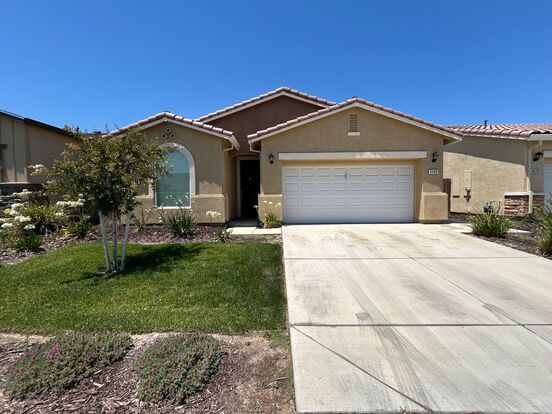 This single-family home was built in 2022 and has approximately 1,616 square feet with a living room, kitchen, carpet & vinyl plank floors throughout, granite counters, gas range, above range microwave, dishwasher, fridge (no warranty/repair), garbage disposal, laundry room w/washer & dryer (no warranty/repair), central heating & air conditioning, two-car garage w/ electric opener, front & backyard. Close to schools, parks, and shopping. Take M St and Arrow Wood Dr, left at Michelle Dr, right at Suzanne Dr, left at Lacy Ln. Yard maintenance provided. Pets strictly negotiable. Yard maintenance provided.