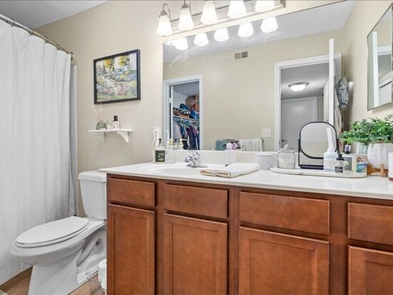 Beautiful top floor 2 bedroom, 2 bath apartment with great view! - Welcome to the tranquil, creekside setting of Antioch Gardens! Relax by the pool or walk out your front door to explore Antioch Park, equipped with a fishing lake, walking trails, and picnic areas. With I-35 just minutes from your driveway, Antioch Gardens is a great location near shopping, restaurants, and a variety of entertainment venues. Antioch Gardens is an all electric and smoke-free community. Pet cats are allowed and pet dogs up to 65lbs. Enjoy having free Google Fiber internet available and plenty of surface parking in the large, private lot with covered parking available for rent.
