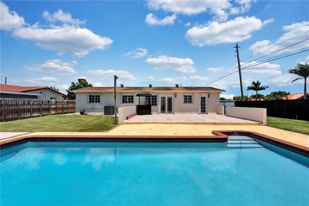 Live the South Florida lifestyle in this spacious 4-bedroom, 2-bathroom pool home, ideally located in the heart of Miami. Set on a rare oversized lot, this home features a split floor plan with a private-entry bedroom perfect for in-laws or guests. The upgraded kitchen boasts walnut cabinetry, stainless steel appliances, and a full laundry setup with washer and dryer. Enjoy a large family room, impact doors, accordion shutters, and French doors that open to a patio overlooking the pool—ideal for entertaining. Close to top schools, shopping, dining, and highways. A must-see!