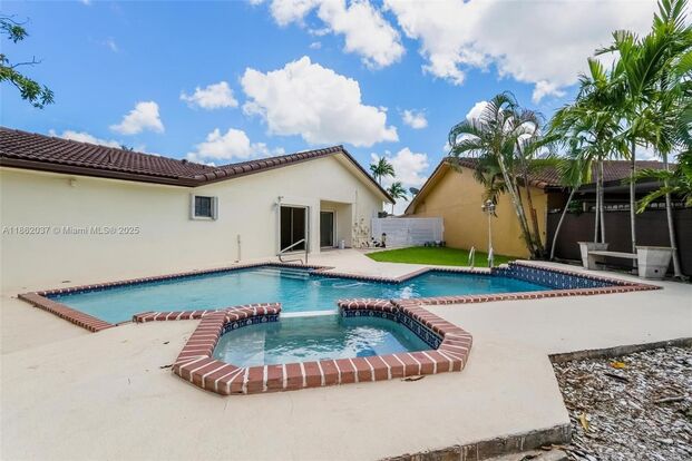 Beautiful updated cul-de-sac home with High ceilings and skylight, offering comfort and style throughout. Features include freshly painted, brand-new bathrooms and a brand-new AC. The Modern Kitchen boasts granite waterfall countertops and stainless steel appliances, which flow seamlessly into the living and dining areas. Outdoor living shines with a large patio, private pool, and mature fruit trees-mango, avocado, and mamey. Double-car garage and spacious layout make this home move-in ready