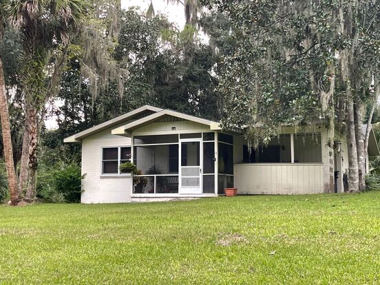 Welcome to this charming 3 bedroom, 2 bathroom home in Micanopy, FL with beautiful views of Lake Wauburg! This house features terrazzo and wood floors throughout, a spacious living room, an eat-in kitchen, and a bonus room that can be used as an office or den. Enjoy the serene lake views from the screen porch or covered porch. The house also includes washer/dryer hookups, central heat & a/c, electric stove top and wall oven, well & septic system, and a water softener system with service included. Lawn service is also included for your convenience. Don't miss out on this peaceful retreat with stunning lake views!