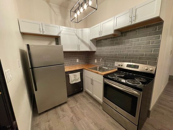 2 Bed 1 Bath Remodel - This 2 bed apartment is housed within an old bank building. Lots of character with large windows and decorative covered radiators. Unit are freshly remodeled with luxury vinyl plank flooring throughout, new kitchen cabinets and countertops, and a fresh new bathroom. All appliances included. Reserved parking in back.