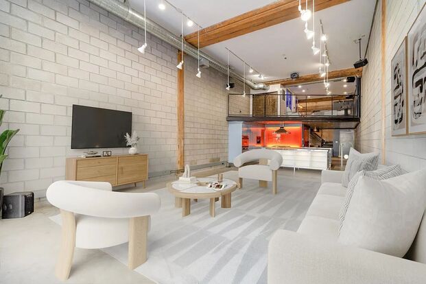Architecturally refined two-level loft in the iconic 801 Washington building, blending industrial character with high-end custom design.