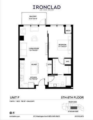 811 Washington, Llc provides 19% more square footage than the average Minneapolis 1 bedroom apartment.