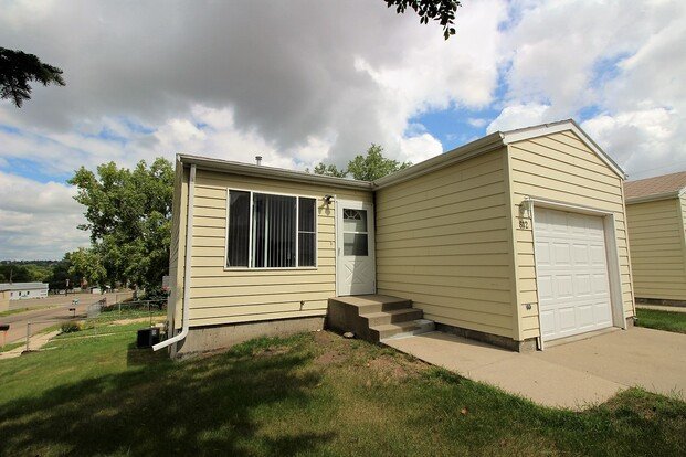 This beautiful 2 bed 1 bath townhouse is located on the west corner of a tri-plex Walking in thru the single stall garage you are met with a dining area and galley style kitchen. There is main floor laundry hookups, lower level unfinished basement with additional storage and large corner yard, central air and forced air heat,