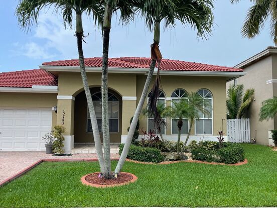 Single Family House with pool available in Monarch Lakes in Miramar - 4 Bedroom and 2.5 bath. Single floor with bedrooms on either side of the house. Very large master bedroom. The rent includes pool and lawn maintenance.