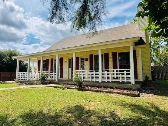 This 3-bedroom, 2.5-bath home features a spacious floor plan with a great room with a charming fireplace. The split layout offers privacy with the primary bedroom conveniently downstairs. Enjoy a fenced backyard with mature trees for shade and privacy, plus a welcoming covered front porch perfect for relaxing.