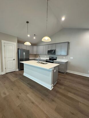 New Villa Home, located on the Brawley Peninsula. One level open floor plan features great room, kitchen/dining, 3BR, 2BA with additional flex room and 2 car garage. Designer kitchen with cathedral ceiling, quartz countertops, stainless appliances including dishwasher, side by side refrigerator/freezer, ice maker, range, microwave. Primary bath has double vanity, step-in shower. Second bath has large soaking tub. Covered porch and patio. Heating/cooling is high efficiency electric heat pump. Electric vehicle charging outlet. Pets allowed with some breed/weight restrictions and additional fees. Non-smoking Property. Located near golf courses, wellness facilities, grocery, and shopping. Pictures are of a similar property.