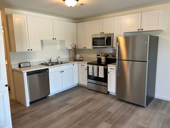Brand New Construction! 2 bedroom 2 bathroom 1000 SQFT. Furnished with washer and dryer connections. Wood vinyl flooring throughout, furnished with refrigerator, stove, oven, dishwasher and garbage disposal. private patio/deck. Spacious bedrooms with walk-in closet in master and middle bedroom. Brand new white appliances, all white cabinetry and marble Formica countertops. Available for move-in 5/24/24!