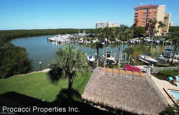 ( Vanderbilt Beach ) 2 Bedroom / 2 Bath / Gulf Access / Boat Lift - Gorgeous bay view from this 4th floor residence at "Anchorage at Vanderbilt " The Anchorage is a gated gulf access community with only 34 condominiums. This 4th floor beauty has 2 split bedrooms and 2 full baths with a spacious great room with a spectacular view off the balcony with bay views like no other. The residence has a 30' lift for a boat up to 7,000 lbs. for lease at $400 per month (boat must be registered to tenant) and private covered parking. It is minutes to the Gulf by boat. Relax by the community pool and chill out at the Chickee Hut. Located on the west side of Vanderbilt Drive and south of Wiggins Pass. King size bed in master and guest bedroom has a Queen and a daybed. Three Tv's: Living room, master bedroom and guest bedroom. One dog or cat allowed. Max weight 25 lbs