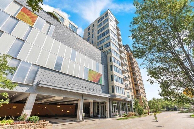 This immaculate One bedroom plus den boasts breathtaking sunset views, high 9-foot ceilings throughout, and a gourmet kitchen with custom cabinetry/granite counters/stainless steel appliances. The unit features Brazillian cherry wood floors throughout with lush carpeting in bedrooms, a private balcony, in-unit laundry, Travertine flooring & counters in bathrooms, a large primary suite with walk-in closets, customized closet systems, a storage locker and 2 underground garage parking spaces. Indulge yourself in Nouvelle's fitness center and luxurious club rooms including a caterer's kitchen, conference room, game room and library. Relax in tranquility on Parc Nouvelle's 1.2 acre rooftop garden, winding trails and patios. Enjoy the convenience of a full time concierge, direct mall access, shopping, dining and Bosse's brand new 21 court Pickledom! Easy access to major highways, Cochituate rail trail, Logan Express.