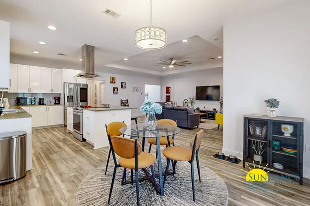 AS-IS items to remain with the property: Nest Thermostat, Washer, Dryer, Pool Table, Firepit, 4 TVs & remotes, vacuum, home decor, and microwave.