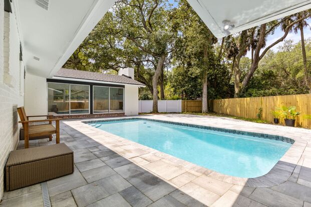 This delightful single-story brick home is perfectly situated on a spacious corner lot, offering a prime location just moments from Neptune Beach Elementary, Jarboe Park, and the beach. With 3 bedrooms, 2.5 bathrooms, and approximately 2,500 sq. ft. of living space, this pool home is ideal for both relaxation and entertaining. Inside, you'll find gleaming hardwood floors that flow throughout the expansive living and dining areas, while the family room features a vaulted ceiling and a charming brick fireplace. Sliding glass doors open to your private backyard retreat, complete with a sparkling pool and a fully fenced yard for added privacy. Additional highlights include a 2-car garage and plenty of space for comfortable living.