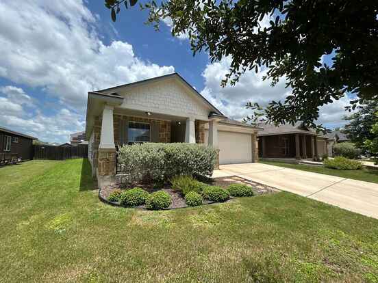 3/2/2 in Avery Park. Covered Front Porch. Flooring is a mix of wood like tile & carpet. Kitchen Includes: fridge, built in microwave, dishwasher, stove / oven range electric, breakfast bar, pantry, granite counter tops, & recessed lighting. Other features: laundry room inside, ceiling fans, garage door opener, walk in closet, walk in shower, double vanities, shower / tub combo , bay windows in primary room, covered back patio with ceiling fan, & a fenced in yard. CISD. 2 Dogs allowed, sorry no cats , max of 50 lbs Community pool, kids pool, & playground.