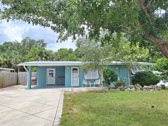 Whether you need a 6 month rental or longer term rental, this home is available! 2026 Winter Season Availability-4 months preferred- (call for Rates)! Absolutely adorable solid concrete block home, 2BR 1BA mostly furnished, featuring a fenced Gorgeous back yard with a deck overlooking the peaceful water view of the tidal canal that flows to Turnbull Bay, sit back and watch otters and wildlife go by. No flooding history! Located off of Wayne Ave, just a half mile to golf course, Ride your bike to the river, many restaurants, and much more...on Sidewalks all the way! Living areas are classic terrazzo flooring and tile on the large rear porch. Home features an updated kitchen with newer stainless appliances and everything you need to get going, plus a Pantry/small appliance storage and coffee bar too! Simply furnished bedrooms, beautifully updated bathroom with walk in shower. Oversized storage/utility room with washer & dryer included. Bonus, huge enclosed rear porch with lots of windows (not under air) with comfortable seating and Smart TV. Energy efficient mini split a/c systems keep the home very comfortable/low utility bills. Plenty of parking, bring your boat! Pets may be negotiable, no smoking, application approval and background check. Sleeps 4 easily. Rentals less than 6 months are subject to applicable taxes. Utilities are Included up to $200/month. Call today to see! Renters Insurance Required for long term rental - Tina or Marcia 386-423-2189