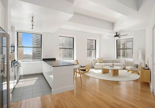 This stunning and spacious 1-bedroom, 1-bathroom residence , situated on a high floor, offers an abundance of natural light, which streams through the oversized windows. Serene southeastern exposure offer optimal sunlight by day and breathtaking city lights by night.. Soaring 11-foot vaulted ceilings create an airy ambiance, enhancing the sense of openness throughout. The expansive living room flows seamlessly into a chef?s kitchen, complete with an elegant open concept layout, generous counter space, sleek white cabinetry, and premium stainless steel appliances. Motorized shades in the living room and kitchen provide the ultimate convenience. The primary bedroom is generously sized and features a custom walk-in closet for effortless storage. A luxurious full bathroom completes this exceptional home.