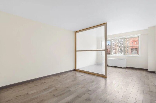 Mint condition Junior studio bedroom just went under a complete renovation. It now has marble floors in the foyer, hardwood flooring in the living area, 3 custom closets with automatic closing draws, porcelain & marble bathroom, and a brand new kitchen. The apartment is partitioned to have a separate sleeping and living area plus an alcove that will fit a desk or dining table. The apartment faces West and filled with sunlight. The building has a 24-hour doorman, laundry, elevator, and a live-in super