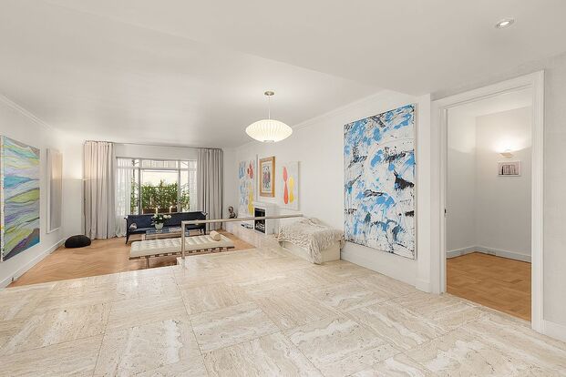This spectacular, lofty one-bedroom residence offers quiet elegance, modern comfort, and coveted southern exposure. It features a Juliet balcony that opens to a peaceful view, welcoming in abundant natural light throughout the day. The apartment showcases travertine marble finishes throughout, including the bathroom, adding a refined and cohesive aesthetic. The smart, efficient layout includes a bright living area, tasteful details, and a serene bedroom with generous storage. As an added bonus, the maintenance includes all utilities and cable TV. A perfect retreat just moments from the city's energy.