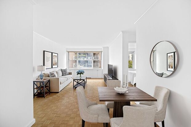 Residents enjoy full-service living with a 24-hour doorman, live-in superintendent, and attentive building staff. Amenities include a well-equipped fitness center, bike storage, storage rooms, and a resident meeting room.