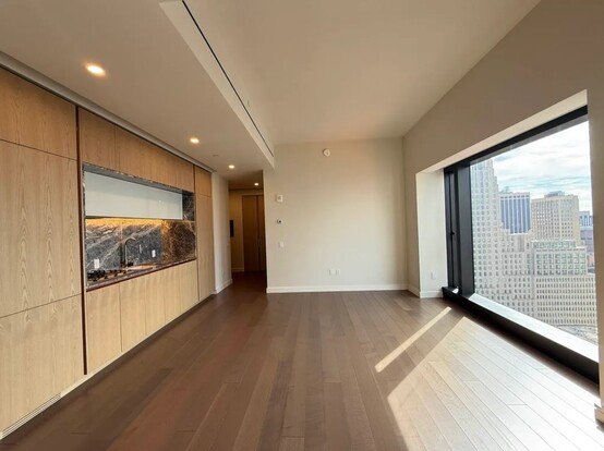 This high-floor residence boasts stunning skyline and river views, abundant natural light, and a well-designed open layout. Oversized windows and wide-plank hardwood floors complement a modern kitchen with stainless-steel appliances, custom cabinetry, and stone countertops. The living and dining areas flow seamlessly for comfortable everyday living and entertaining. Bedrooms feature ample closet space and city views, while spa-inspired bathrooms showcase elegant tilework and premium fixtures.