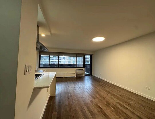 This bright and spacious two-bedroom features a huge private balcony that truly feels like an extension of the apartment. There's plenty of room for outdoor dining, morning coffee, or just relaxing in your own quiet corner of the city. Inside, the oversized L-shaped living and dining area is filled with light thanks to a full wall of windows, and it flows directly out to the balcony making the space feel open and easy.