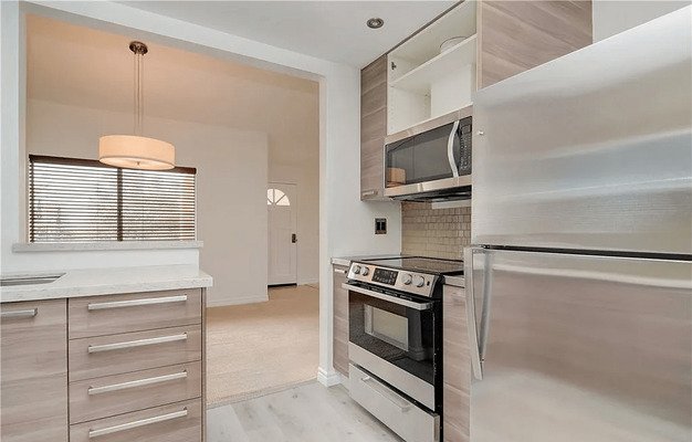 Near Fashion Island, Balboa Island and Back Bay of Newport Beach, located in a gated association. Bright sun filled unit with fresh interior paint. Spacious living room with vaulted ceilings, fireplace and sliding doors leading to the balcony, updated kitchen cabinets, counter tops and backsplash, new vinyl floors in kitchen and laundry room, recessed lights, separate inside laundry closet (adjacent to kitchen), large bedroom with door leading to balcony, walk in closet, hear pump (heat and AC), and 1 car detached garage with storage shelves.