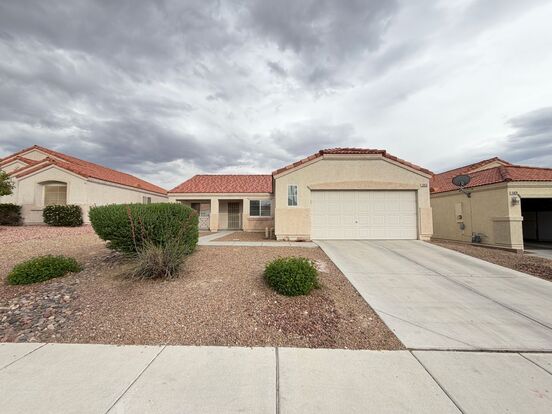14 days free from date of approval. Advertisement rent includes sewer, refuse, association dues and RBP*. Charming single-story home featuring tile flooring throughout for stylish, low-maintenance living. The bright, open living space includes ceiling fans in both the living room and primary bedroom for added comfort year-round. This home also offers a separate laundry room and a 2-car garage for convenience. A well-designed layout that blends comfort, functionality, and everyday ease. Enjoy spacious front and backyard areas with desert landscaping, designed for easy care and outdoor enjoyment. Easy access to the 95.