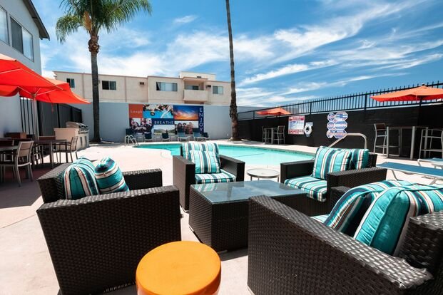 Great location right across the street from CSUN on the corner of Prairie and Darby. Just minutes from tons of local food, coffee and night life spots. This is the ideal location in Northridge for families and students. This building has 72 units surrounded by gated entrance and parking, fitness center, pool with BBQ and dining, laundry on site and a grassy dog park. The studio, 1 and 2 bedroom layouts are newly renovated with hardwood floors, updated kitchen, central AC and granite counters. You can't beat this location in the heart of Northridge.