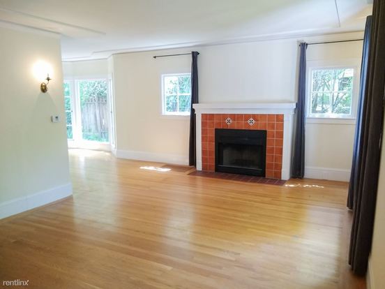 This cozy and spacious home’s unfurnished interior offers premium hardwood/tile flooring, large windows, and a fireplace. The kitchen is equipped with smooth countertops, fine cabinetry, stove (not hookup), dishwasher, garbage disposal, refrigerator, and oven/range. Vanity sink cabinets, pedestal sink, medicine cabinet, shower/tub combos, one enclosed in metal-framed sliding frosted glass panel while the other is curtain-partitioned, furnished its elegant bathrooms. There’s a storage area in the attic that tenants can use. For climate control, it has installed forced-air heating. An in-unit washer and dryer are also provided for your laundry convenience. This is a pet-friendly home so your beloved pets are allowed with a $500 pet deposit/pet. Smoking is prohibited in the property though.