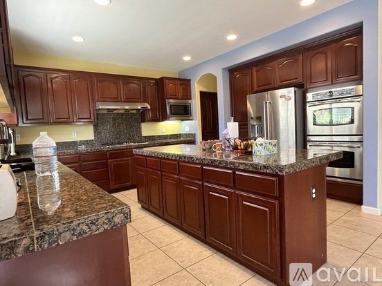 This house is a gorgeous immaculate two-story home with spiral wrought iron staircase, light & bright open spacious floor plan. It is a move in ready home with 5 large bedrooms + loft with built-in desk for home office, 3 bathrooms, one bedroom & bathroom downstairs.The house is partially furnished. A bautiful gourmet kitchen, granite countertops, espresso dark burgundy cabinets, breakfast bar seating, high-end stainless steel appliances, gas range, built-in double oven, & huge pantry. Plantation shutters, custom media center, 2 gas fireplace, lots of natural light throughout! Spacious master suite including a separate shower and soaking tub, dual vanities and large walk-in closet. Low maintenance backyard, a good size coverd patio with ceiling fan and some fruit trees. New LVP flooring in familyroom, dinningroom and Livingroom and tile through out hallway, bathrooms, laundry room, kitchen and easy for maintaining. The house has a three cars garage. Solar owned and keep electricity bill low and located in a desirable Oakley neighborhood. Great convenient location to Highway 4, BART & other transportation options. Walking distance to Gehringer Elementary School & Shady Oak Park. Close to Public & Private schools, churches, shopping centers.