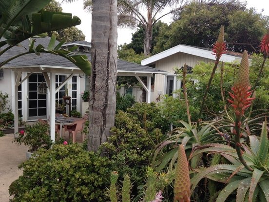 FURNISHED 2 bedrooms, 2 full baths, secluded in a tropical setting. **AVAILABLE Nov. 01, 2025. RENTAL FOR MAXIMUM 7MONTHS ** NO LESS THAN 6MONTHS and must be rented FURNISHED ** . Great covered patio surrounded with a 6’ wall (very private). Walk to the beach, Serene atmosphere. Best area of Oceanside; one block outside St. Malo Resort. Also – best micro-climate in the city, warmer during the winter, cooler during the summer. Nicely constructed home, with open beam ceilings and lots of windows. Very clean and well-maintained. Spacious rooms, considering that it’s a beach cottage. Laundry facilities in garage. NO Garage Parking but Plenty of off-street and on-street parking and outside/infront of garage for 2 spaces. SORRY NO PETS and NO SMOKERS!!!