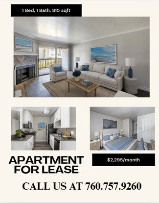 At Carlsbad View Apartments, find luxury apartments living in a lush park-like setting within a gated community. Our spacious one- and two-bedroom apartment homes come standard with washer/dryer hook-ups*, stainless steel appliances*, crown molding, designer paint, ceiling fans, gas fireplaces*, spacious closets, private patios/balconies with extra storage, and complimentary carport. Our on-site amenities include a swimming pool, jacuzzi, fitness center, business center, lighted tennis courts, dog park, assigned covered parking, and BBQ area. You’ll enjoy lounging under the shade, swaying palm trees surrounding our resort-style pool, or watching the sunset from your private patio or balcony. We’re here to welcome you to a better way of living.