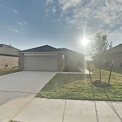 Welcome to this very nice, spacious 3-bedroom, 2-bathroom home located in Mustang, OK. As you step inside, you'll be greeted by beautiful wood look flooring that adds a touch of elegance to the space. The primary suite boasts an attached private bathroom and large walk-in closet, ample storage for all your belongings. The spacious kitchen features tons of cabinet space, perfect for meal preparation and entertaining guests. With an open concept design, the home offers a seamless flow between the kitchen, dining area, and living room, creating a warm and inviting atmosphere. Whether you're hosting a dinner party or enjoying a quiet evening at home, this house provides the perfect setting. Schedule a showing today and experience the comfort and convenience this home has to offer. Pets case by case.