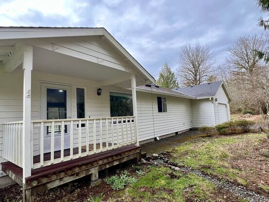 3 BD, 2 BA, 1,392 SF rambler. Located in a quiet rural setting with the convenience of being close to shopping and amenities. Open living/dining/kitchen with wood-stove and slider leading to back deck. Kitchen appliances include: Refrig, electric range, and dishwasher. Laundry off kitchen and primary bed/bath with W/D appliances included. Primary bed also offers double closets and bay window. Tenant to maintain yard and utilities.