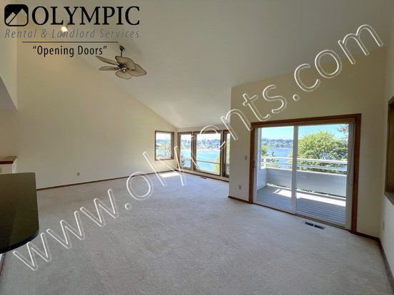Enjoy expansive water views of Budd Inlet from this Eastside of Olympia townhome! Beautifully maintained 2-bedroom, 2.5-bath townhome located in Olympia's desirable Eastside neighborhood, just minutes from Downtown, shopping, dining, and easy I-5 access. Step inside to an open-concept living area featuring vaulted ceilings with a ceiling fan, large windows, and access to a covered balcony offering breathtaking views of the bay. The kitchen comes equipped with a refrigerator, gas range, dishwasher, and a countertop microwave (included as-is). You'll find two spacious primary suites, one with a 5-piece en-suite bath, walk-in closet, and its own private balcony with more serene water views. Additional features include a one-car garage with remote, laundry room with washer and dryer included,, gas forced air heating and gas water heater. Small to medium pets negotiable with additional rent and deposit. No smoking. City of Olympia. Visit our website to watch the video tour!