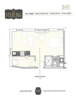 The Sterling provides 26% less square footage than the average Omaha studio apartment.