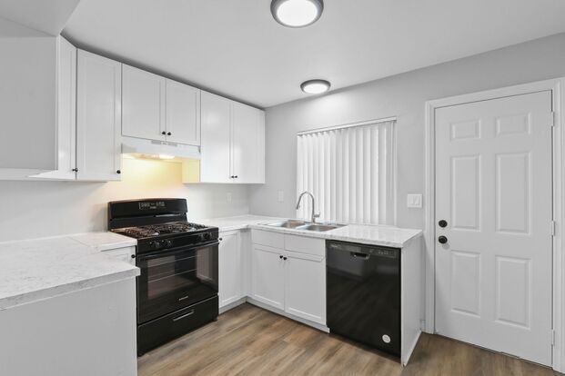 2 bedroom 1 bath apartment home - This 2 beds 1 bath apartment home is located in the city of Ontario California. Unit comes with brand new windows, paint and flooring throughout. In close proximity the 10, 210 freeways, schools, shopping, dining, and public transportation. This unit comes with 1 parking and a small storage space in the parking.