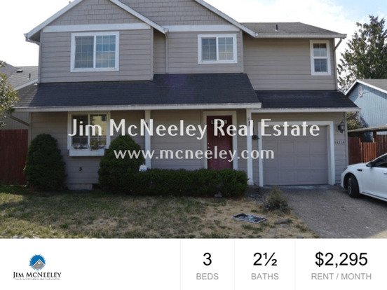 NO CATS - 2 dogs OK - Must be over the age of 1 and under 35 pounds - Security Deposit is increased by $500 per pet. This well cared for, 2005 Traditional style home is located on a quiet dead end street. The home features 3 bedrooms, 2.1 baths and 1,600 sq ft. This home offers laminated hardwood floors, black appliances with refrigerator, built in microwave, range, dining, and living room. The home also has family room with gas fireplace, 1/2 bath on the main.