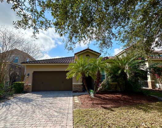 Welcome to your dream home, this golf course-front masterpiece offers breathtaking views of the 3rd hole of the renowned 4.5-star Eagle Creek Golf Club. Step inside to a move-in-ready oasis where every detail has been thoughtfully upgraded. The expansive floor plan is carefully designed to provide ample space for relaxation, entertainment and everyday living, with a perfect blend of modern elegance and warm sophistication. The home features tile flooring throughout the main living areas, cozy carpet flooring in the bedrooms, high 10-foot ceilings with 8-foot doors that creates an open and spacious feel, plus an extra upgrade with pre-wired surround sound in both the family room and master suite. The beautiful kitchen is a chef's dream, equipped with top-of-the-line stainless steel appliances, custom 42" wood cabinets, sleek granite countertops with a kitchen island/breakfast bar. Step outside to the back patio area and spacious backyard, it has dual gated access and mature landscaping, ideal for outdoor activities or enjoying Florida’s year-round sunshine. Four spacious bedrooms, each a serene retreat, and three stylish bathrooms, this home is ideal for families, professionals or anyone seeking a luxurious lifestyle. Escape to your own private oasis, the master suite features trey ceilings, a generous walk-in closet and a designer ensuite bathroom with dual vanities, a relaxing garden tub, a stunning floor-to-ceiling tiled shower and a separate water closet. For added convenience, this home offers a laundry room (Washer and Dryer Included) and a spacious 2 car garage. Built for both style and durability, this home boasts a tile roof, brick paver driveway and paved back patio. Don't miss the incredible opportunity to live in a piece of paradise! Whether you're a golf enthusiast or simply seeking an upscale, amenity-rich community, this home delivers unmatched value in a prime location. Offering a unique blend of small-town charm and big city amenities, a vibrant town center, top-rated schools, near Lake Nona Region and Medical City, plus a short drive to Orlando International Airport. Pets will be considered. All residents are enrolled in the Resident Benefits Package which includes AC filter delivery, utility concierge, our best-in-class resident rewards program, and much more! More details in our Rental Selection Criteria or upon application. NO SIGHT UNSEEN APPLICATIONS.