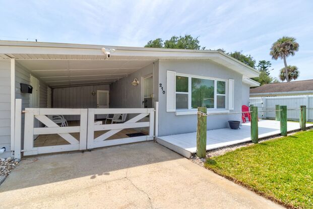 If you are looking to live the Florida lifestyle, look no more! Enjoy the beach only 1500 feet away and afterwards rinse your feet and beach toys off at Argosy Park! This adorable 2 bedroom, 1 bath beachside bungalow is updated and meticulously maintained! It is full of character! This home features BEAUTIFUL tongue in groove beamed wood ceilings, tile & vinyl plank flooring, and vaulted ceilings! Let your imagination run wild with the mostly- finished outbuilding. Adding a window A/C unit it could be your home office, art/ fitness studio or extra storage! Watch the sunrises and sunsets from your beautiful front porch. Smell the salt air and enjoy the ocean breeze from your large back deck. Park your car in your private carport. This home has it all, even parking for 4 vehicles in your driveway! Don’t miss this one! It will not last!