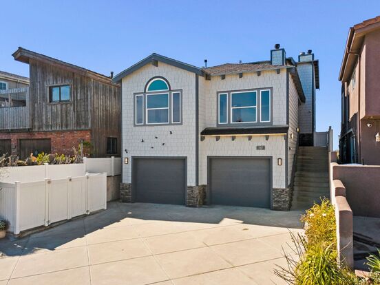First floor encompasses two car garage as well as space for storing all of your beach toys! Up a short flight of stairs is the stunning highly upgraded modern kitchen that is open to the living room, as well as a half bathroom to wash off after Surf sessions. Kitchen has large island with pull out drawers, Wolff Range, tons of storage and lovely beach fixtures.