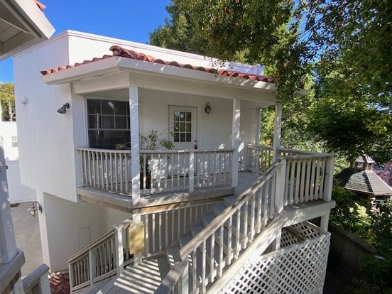 This 1 bed 1 bath detached apartment is a hidden gem just blocks (2-3 blocks) from downtown Pacific Grove and Lover's Point beach. Set back from the main road, this apartment has a sense of quiet privacy to relax and unwind. The living area and kitchen are open plan with a convenient dining pass through bar, making it feel light, bright and spacious. Nice Luxury vinyl wood look floors with carpet in the bedroom. The corner gas ceramic log fireplace and kitchen finishes bring a modern touch. There is a washer and dryer in the unit and a one car garage with a storage closet, peeks of the ocean from the inside and outside, views of a beautiful redwood tree, a balcony deck and a private patio area dedicated just to the 2 units. Must see! Rent $2350, security deposit $3525. Owner pays for sewer and trash. Tenant pays all other utilities. Sorry, no pets. One year lease, available now.