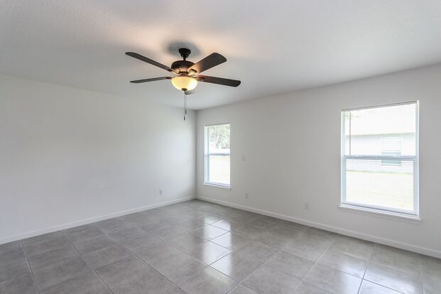 Be the first to apply to this beautiful and spacious, 4BR/2BA home on an oversized lot located in the lovely community of Palm Bay! This home was built for the convenience of the tenant in mind with upgraded, tiled flooring throughout and granite countertops for durability and aesthetics! There is NO carpet! The kitchen features stainless steel appliances for a gorgeous, modern look with an island for ample space to prepare meals or to be used as a breakfast bar and perfect for bar-stool seating! With energy-efficient insulation and windows to save you on utility costs, this home is too good to be true! Only minutes from numerous options for dining, shopping, and entertainment! Close to I-95 for easy commuting! Schedule your showing today and you will not be disappointed, but hurry because this home will not be available long!!
