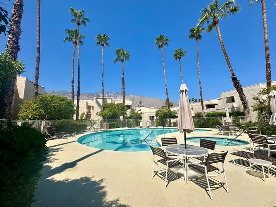 Introducing this spacious 2-bedroom, 2-bathroom condo in the center of Palm Springs. This condo boasts a range of desirable amenities, including a community pool and spa for relaxation, on-site laundry for convenience, central heating and air conditioning for comfort, guest parking for visitors, a covered carport for your vehicle, and an enclosed private patio for outdoor enjoyment.