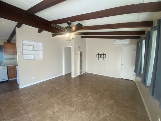 Charming 2 bedroom and 1 bath home on the Westside of Palmdale. Close proximity to all of the shopping and conveniences on 10th St. West. Fenced and gated the home features open beam ceiling and split A/C heat units in both bedrooms as well as the living room. Updated windows, kitchen with dishwasher and frig included without warranty. Huge backyard offers a covered parking for an RV and plenty of room to play. 1 car garage features the laundry hook-ups. For the price of an apartment you get a house!