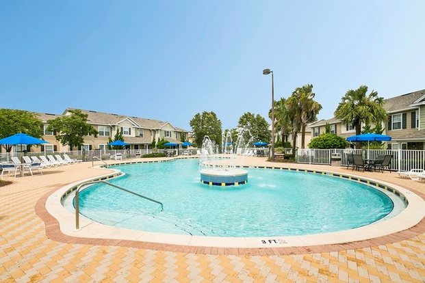 NOT AVAILABLE UNTIL JAN 1ST: Beautiful 1st floor condo with gated entrance, gym, pool and playground. Great beach location behind Carrabas. 2 bed/2 bath with granite counters, and stainless appliances in kitchen. Lots of storage and both bedrooms have large walk-in closets. Garbage, water and trash (dumpster for complex) are included in rent. First & last months' rent to move in. No pets please.